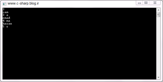 Console.WriteLine(z.ToString()+" "+ n[k].ToString() + n[k + 1].ToString());