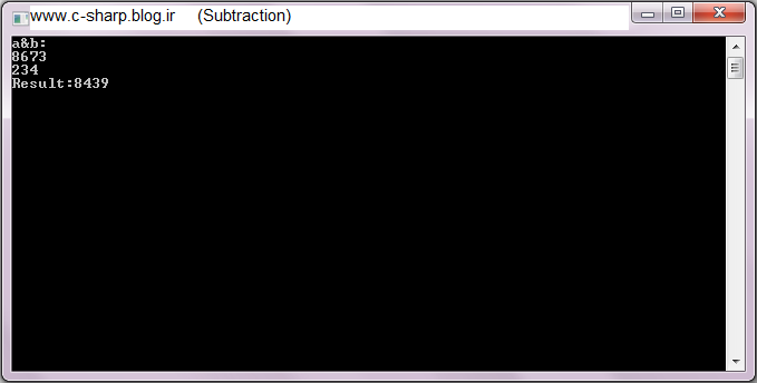 تصویر خروجی برنامه ی تفریق(Subtraction):